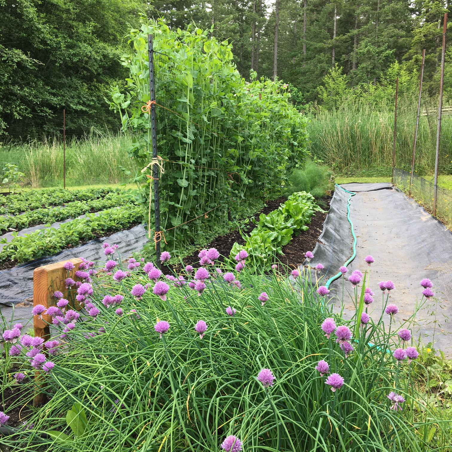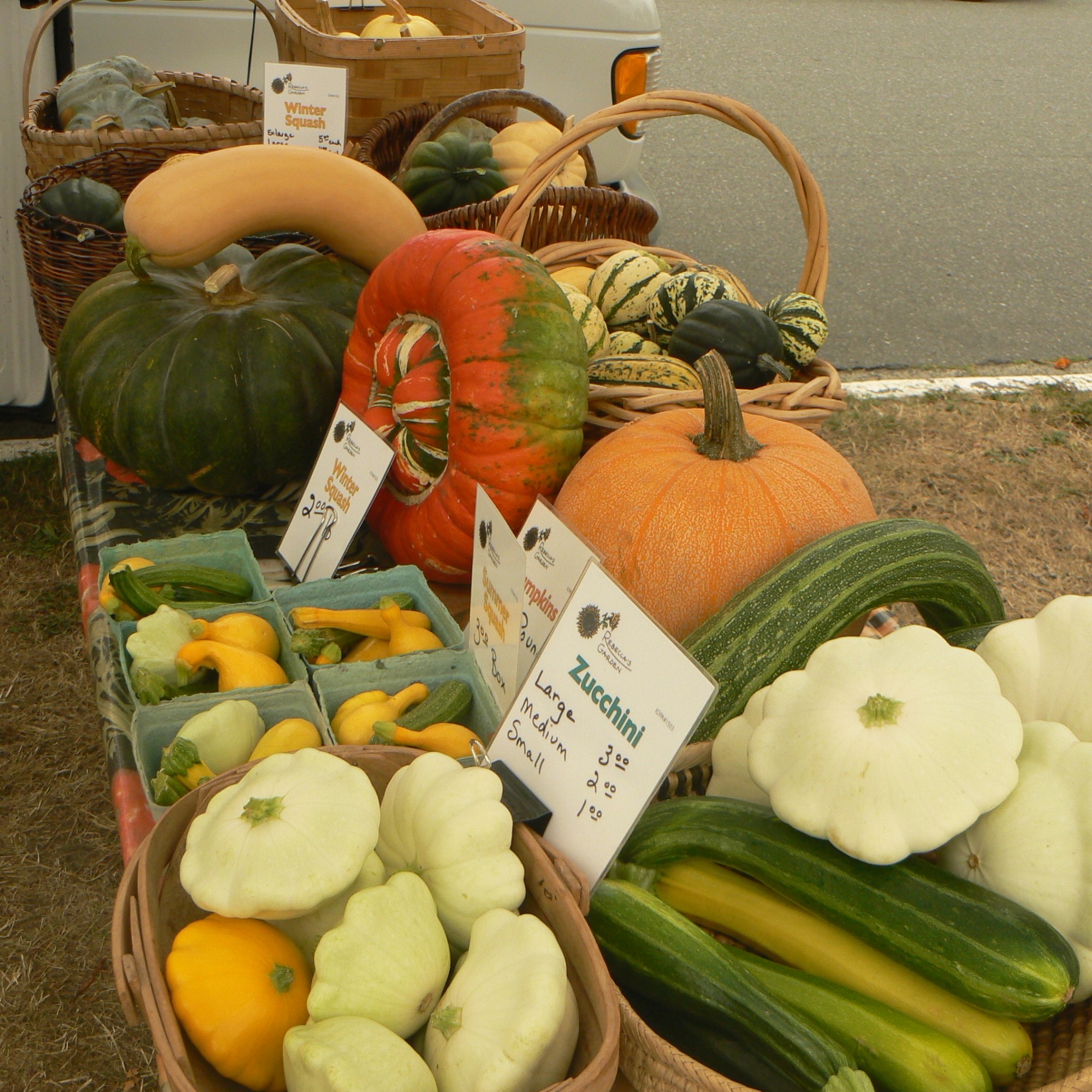 Rebecca’s Garden had two farming locations. One was nestled in the woods, growing berries, greens, roots, brassicas, garlic, flowers, herbs and other shade loving crops. The other was an open south-facing slope, growing the bean crops and other sun loving vegetables, such as tomatoes, peppers, eggplants, cucumbers, melons and squash.