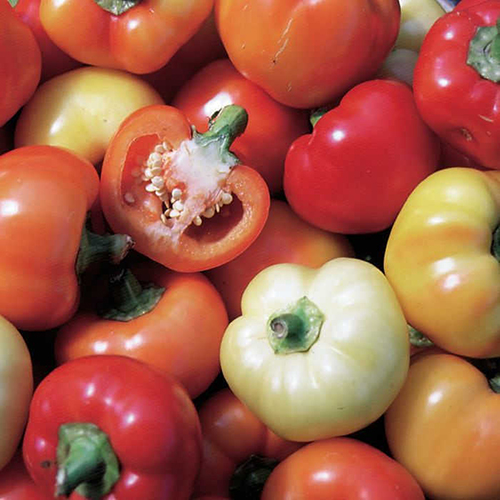 A fabulous pepper, the best for drying and grinding for paprika also for fresh eating sweet and succulent with a bit of warmth. Popular in Hungary for picked peppers these mushroom shaped fruits ripen from creamy white then orange to red, harvest red for dried or smoked paprika powder.