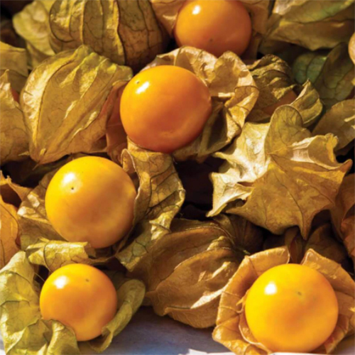 These sweet fruits are also know as Cape Gooseberry or Husk Cherry and are related to tomatoes and originated in Poland. The vines produce large volumes of pale orange tasty fruits covered with paper like husks. Fruits can be eaten raw in fruit salads or smoothies, dried, frozen, canned or made into jam, pies or other desserts.