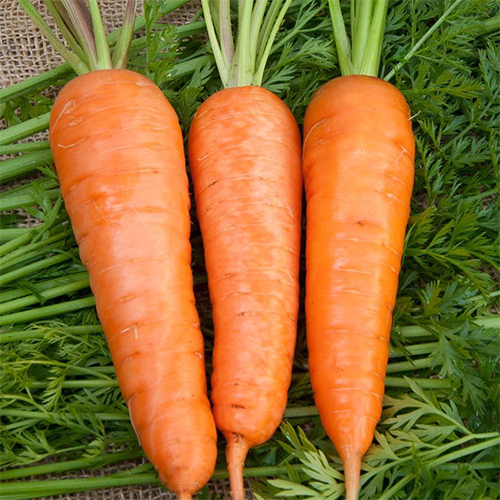 The standard garden carrot for heavy or shallow soils. Sturdy 15”-20” tops with 5”-7” long cylindrical red orange roots with a sweet fine grained flesh. Produces dependable copious yields for fresh market, freezer or storage. Delicious, beautiful, easy carrot very rewarding for children to grow.