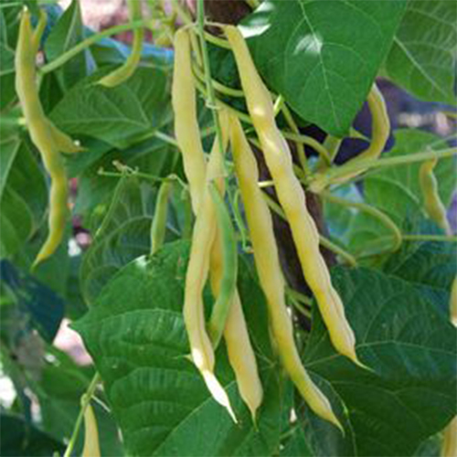 Magnificent pale golden Romano beans grace this 6′-7′ tall pole bean plant producing massive crops of large 9”-10” tender flat pods over a long season. Very sweet and tasty when picked young but still tender even when plump. This variety was almost lost commercially but was preserved by backyard seed savers.