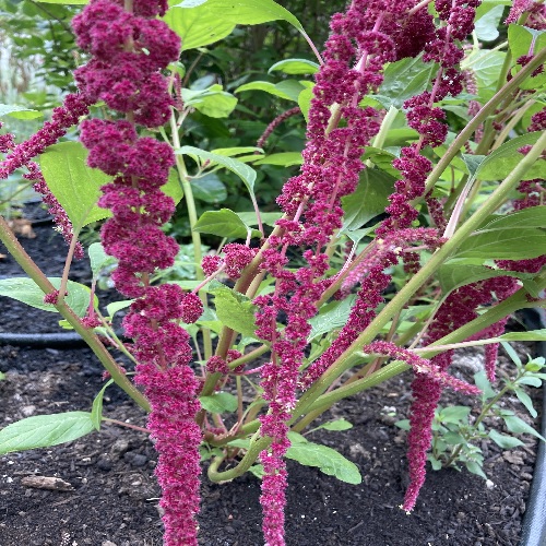 Annual: Spectacular accent in the garden landscape. Ropes of crimson coloured blooms hang cascading down dark green foliage. Growing about 4 feet high this plant shows a striking display. Flowers are great in arrangements and are reminiscent of an older tradition. Blooms all summer into autumn and is also used dried for winter bouquets.