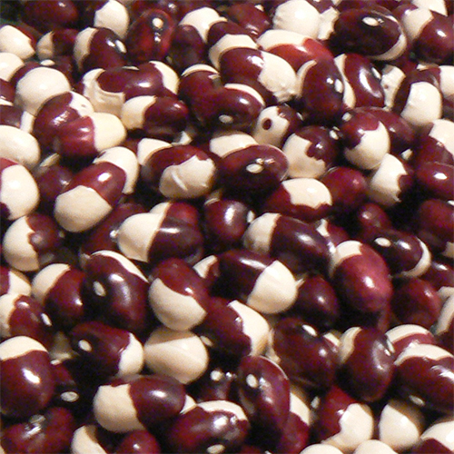 A bush dry bean given to Salt Spring Seeds by Mojave Kaplan and named by Dan Jason. Heavy yielder of large half maroon and half white beans, very beautiful and tasty. This variety works well in soups and stews, adding a wonderful flavour. The seeds hold seperate colours and pattern when cooked so is very striking in salads.