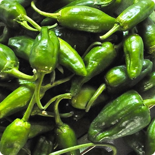 This famous heirloom is native to Galicia in northwestern Spain best harvested when 1-1.5″ long. Named after the town where it originated this unusual pepper will have 1 out of 20 fruits hot if allowed to grow larger. It is typically sautéed in olive oil with a little sea salt and eaten as a tapas.