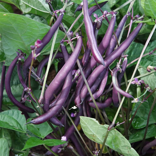 A bush bean with short runners and beautiful purple flowers. Bred at the University of New Hampshire by Prof. Elwyn Meader and introduced by Billy Hepler Seed Company in 1957. Pods are 5”-6” long bright purple, stringless, slightly curved, very tender, delicious, turning green when cooked. Tolerates shade, germinates well in cool soils and is disease resistant.